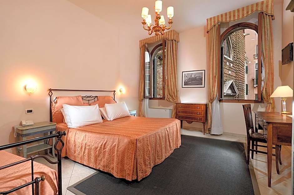 This elegantly furnished room features air conditioning, a satellite TV and an private bathroom. It offers views of the square or of the canal.